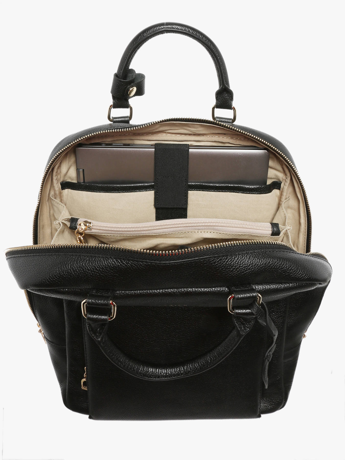 La version business du sac à dos ETRIER de la ligne TRADITION évolue cette saison avec des détails plus discrets et des accents dorés. Alliant praticité et élégance, cette pièce de maroquinerie offre un grand espace de rangement, notamment avec sa pochette à soufflet à l'avant et ses multiples fermetures éclair. Conçu en grand format, il peut accueillir des documents au format A4 et se porte également à la main pour une polyvalence optimale.