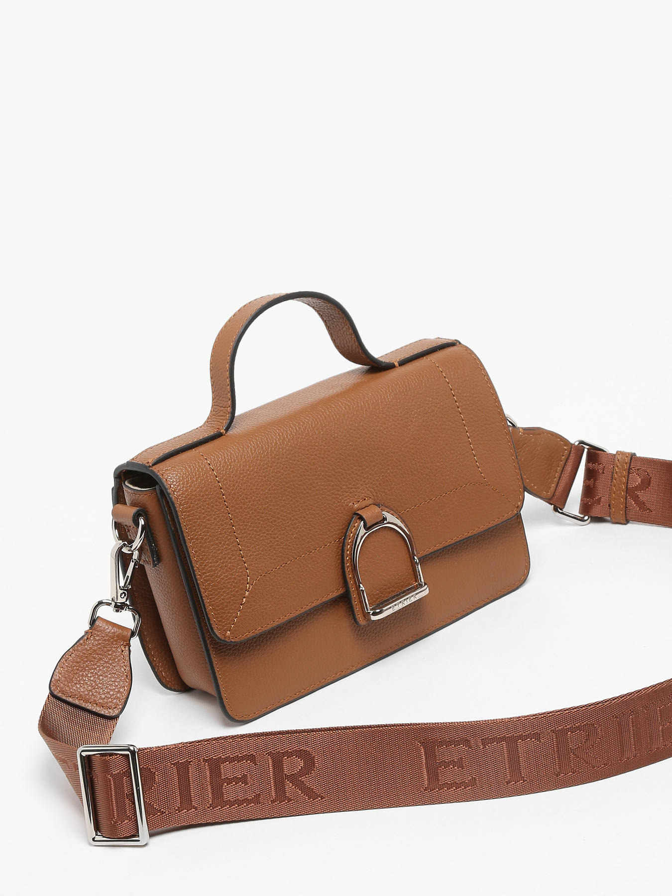 Le sac bandoulière ETRIER de la ligne ALTESSE, de format moyen, est conçu en cuir de vachette. A l’arrière se trouve une poche plate. Il propose une large bandoulière amovible en toile brodée du logo ETRIER ton sur ton, ainsi qu'une anse en cuir. La fermeture à rabat, ornée de l'étrier en métal emblématique de la maison, se sécurise par pression. Polyvalent, il peut être porté en bandoulière ou à la main. À l'intérieur, découvrez un porte-clé en cuir, un compartiment avec une poche simple et une poche éclair pour une organisation optimale. Disponible dans plusieurs coloris saisonniers, ainsi qu'en tailles supérieure et inférieure.